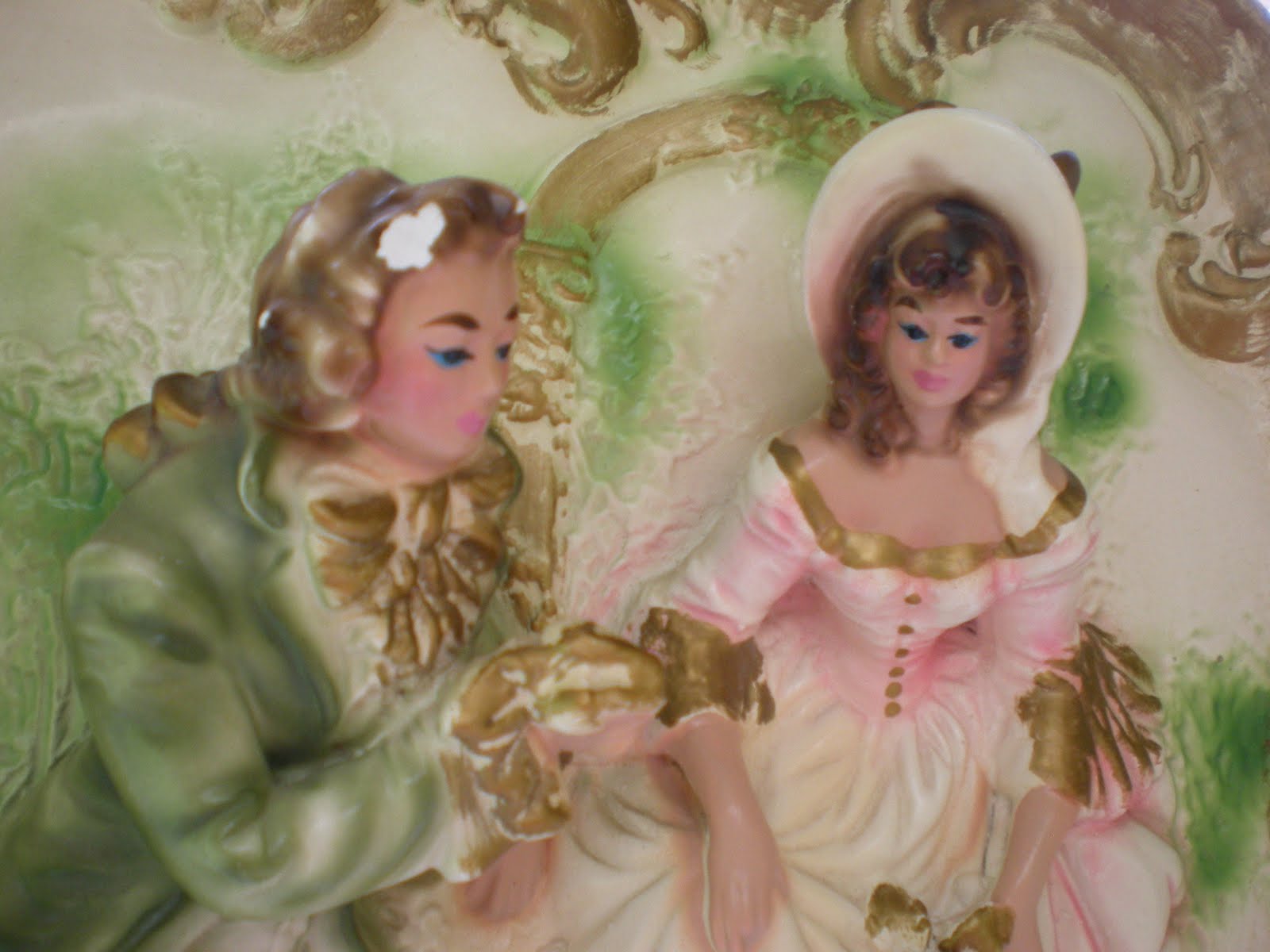 I have had these pieces for more than twenty years. I rearranged my display on the porch buffet and used pedestal cake plates to elevate the collection.